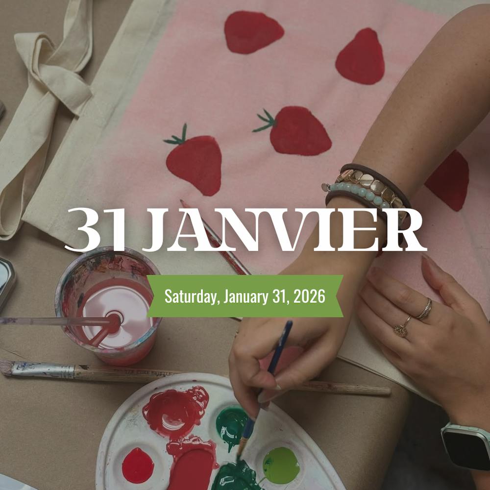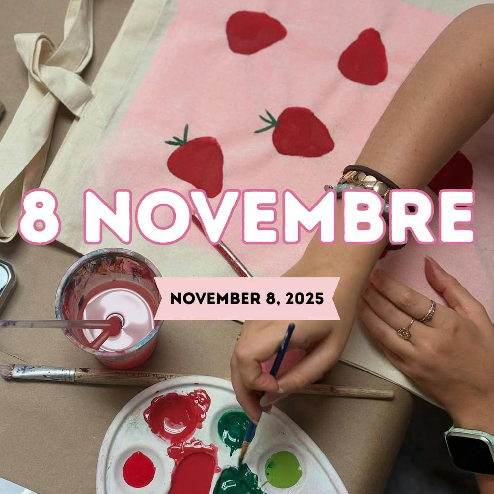 - Follow with a painting session on a tote bag, led by a Canvas Club instructor