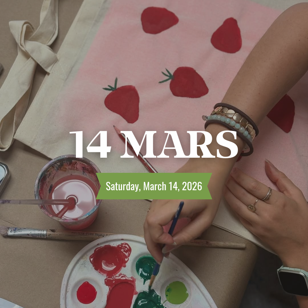 - Follow with a painting session on a tote bag, led by a Canvas Club instructor
